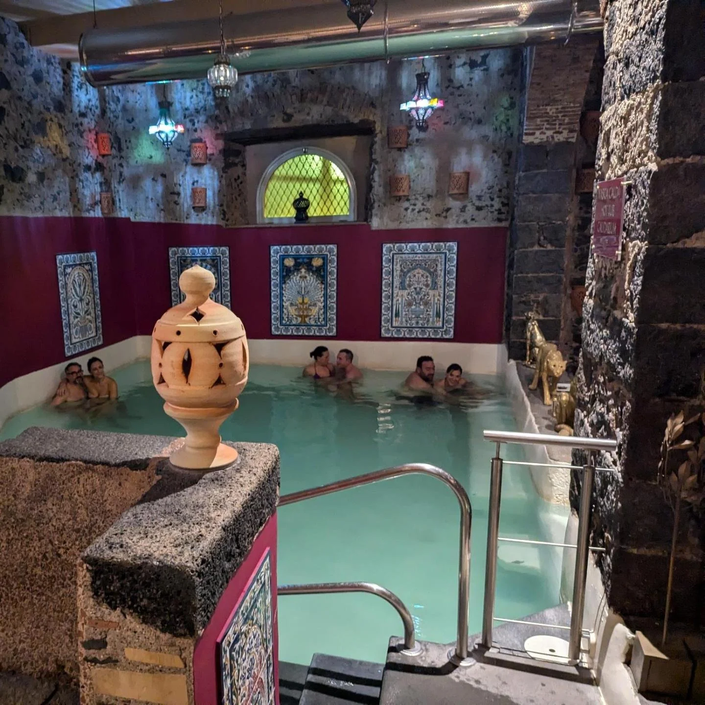 Our journey began at Bagni Arabi, an ancient hammam dating back to Sicily’s Moorish era. Carved from volcanic rock and adorned with intricate Moroccan tiles, the hammam offered an exotic retreat that felt worlds away from modern life.